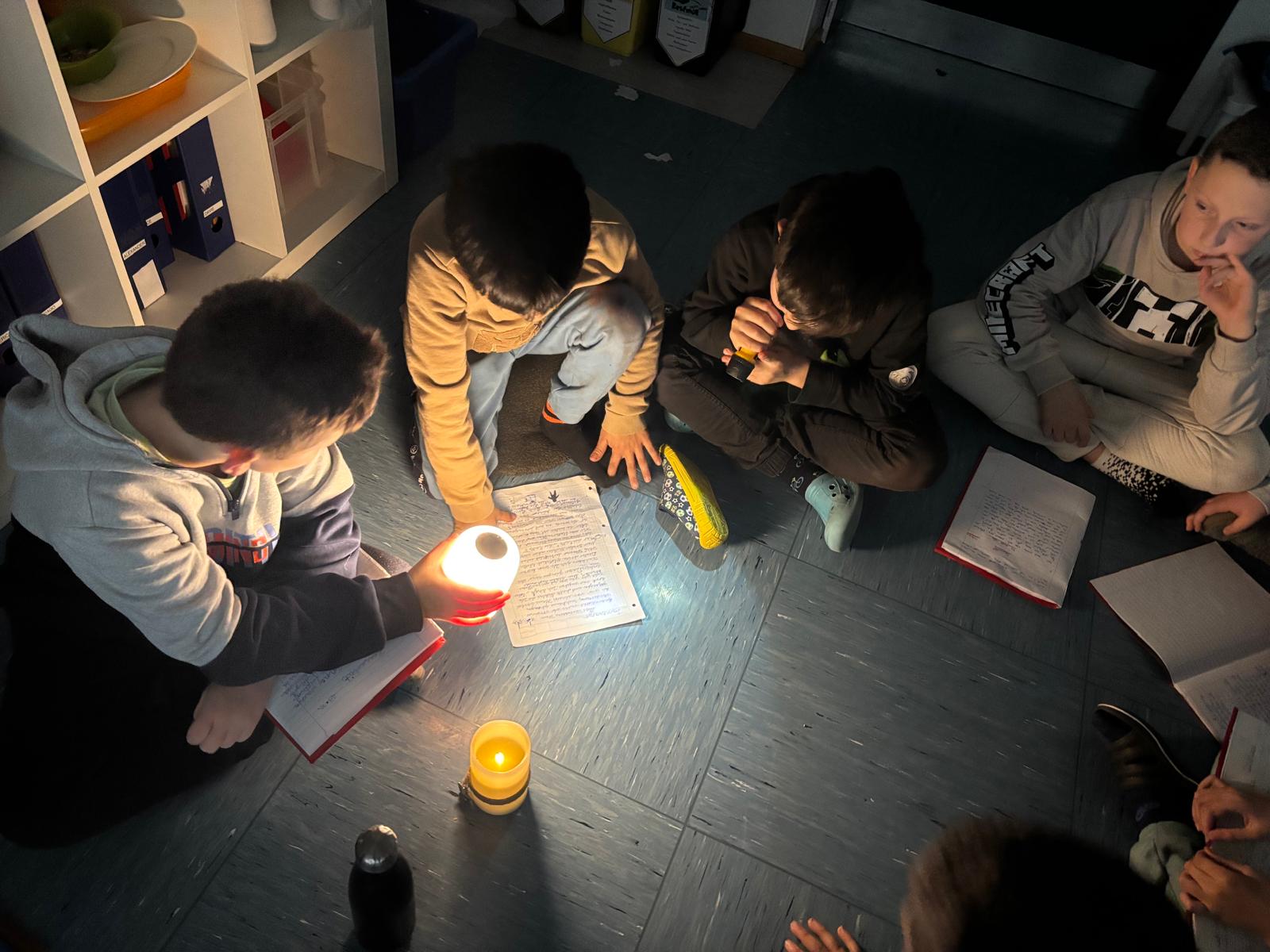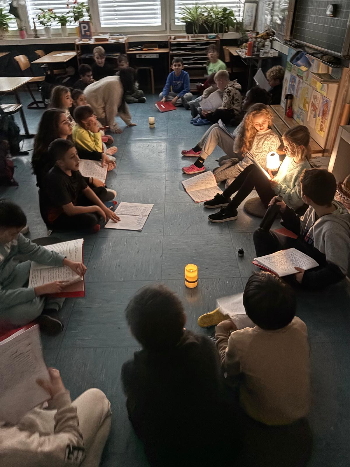 Schon morgens lag eine spannende Atmosphäre in der Luft, als die Kinder ihre Geschichten stolz in die Schule mitbrachten. Mit gedämpftem Licht und gruseligen Dekorationen haben wir das Klassenzimmer in eine richtige "Lesebühne" verwandelt, die perfekt zur Stimmung passte. Jedes Kind hatte die Möglichkeit, seine Geschichte vorzutragen, und dabei zeigten die Schüler großen Mut und Kreativität.